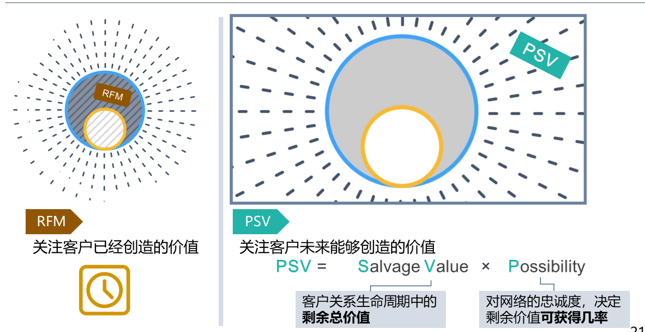 传统的客户价值评估体系,往往来自于RFM模型的变种,关注最近一次消费、消费频率、消费金额;把那些消费多、消费大、消费日期近的客户定义为我们的VIP。