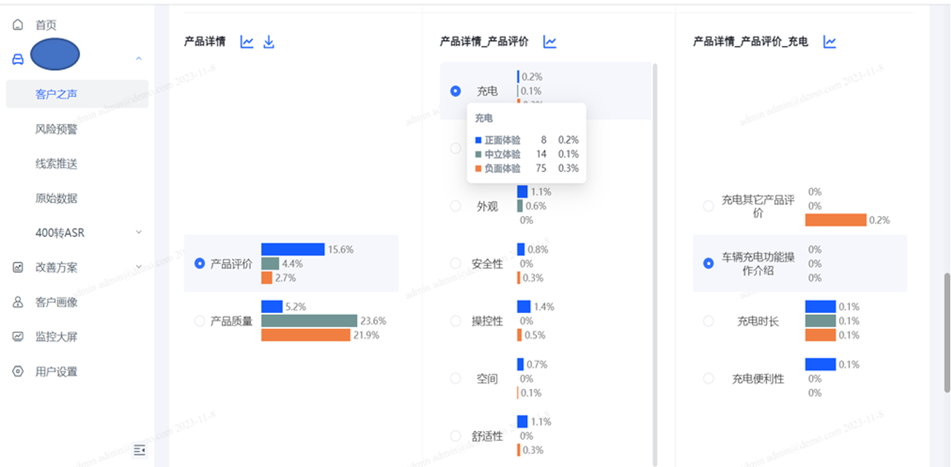 B品牌把传统调研数据、400客服数据、车机数据、官方社媒数据,尤其是经销店内的运营数据,包括咨询、投诉、接待,甚至工单都做了接入,这是我们目前看到的最多数据类型的客户之声平台,使得其基于此的体验监测更全面,从品牌到产品、从销售服务到售后服务,消费者的所有体验反馈都得到了记录,也使得其后续可以开展的体验改善有更大空间。