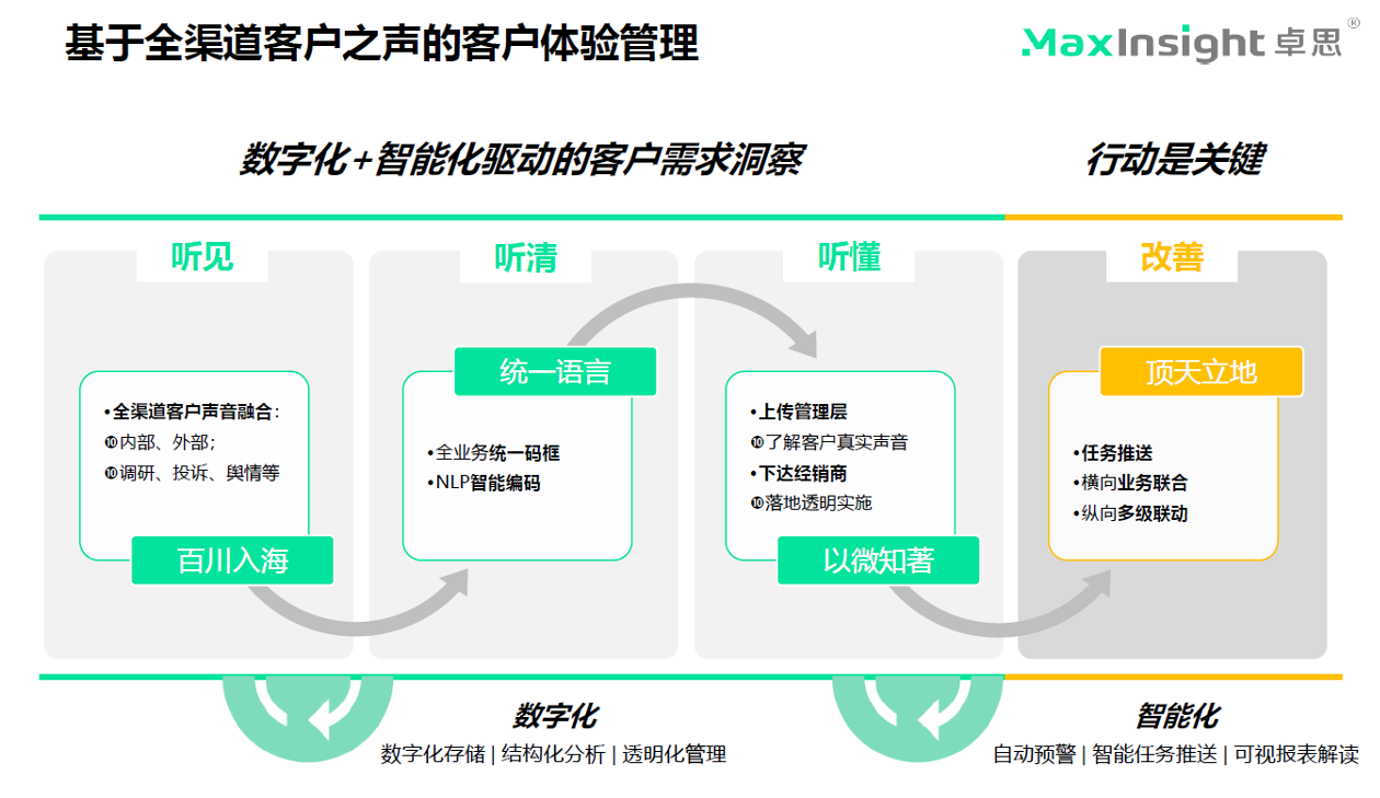 很多人一提到客户体验管理,就想到NPS研究,很多从业者也或多或少有一些市场研究背景,反而影响了我们对于客户体验管理的理解。市场研究因为数据所限,所以只能扮演监测和分析的角色。今天,由于数字化技术的提高以及全量数据的引入,自然也使得客户体验管理的意义不仅是监测和分析,更重要在于改善。