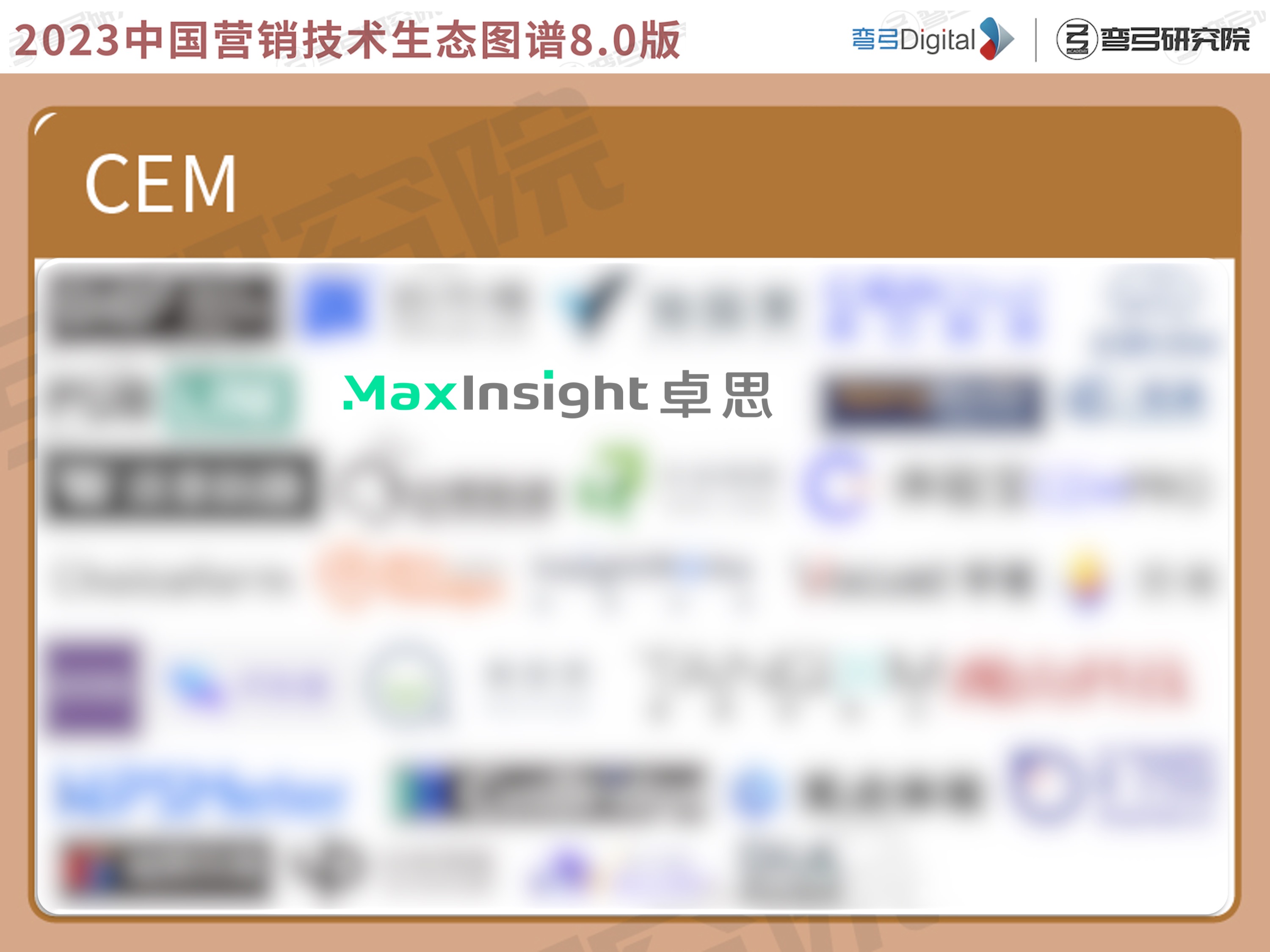 日前,国内MarTech领域知名机构弯弓研究院发布了《2023中国营销技术生态图谱8.0版》,北京卓思天成数据咨询股份有限公司(以下简称“卓思”)凭借突出的市场占有率和品牌竞争力,入选该图谱【内容与体验--CEM】板块,成为CEM(Customer Experience Management,客户体验管理)领域优秀服务商代表。