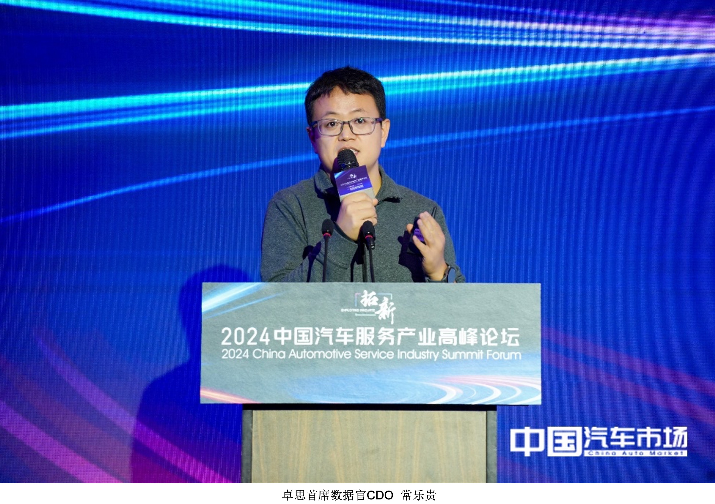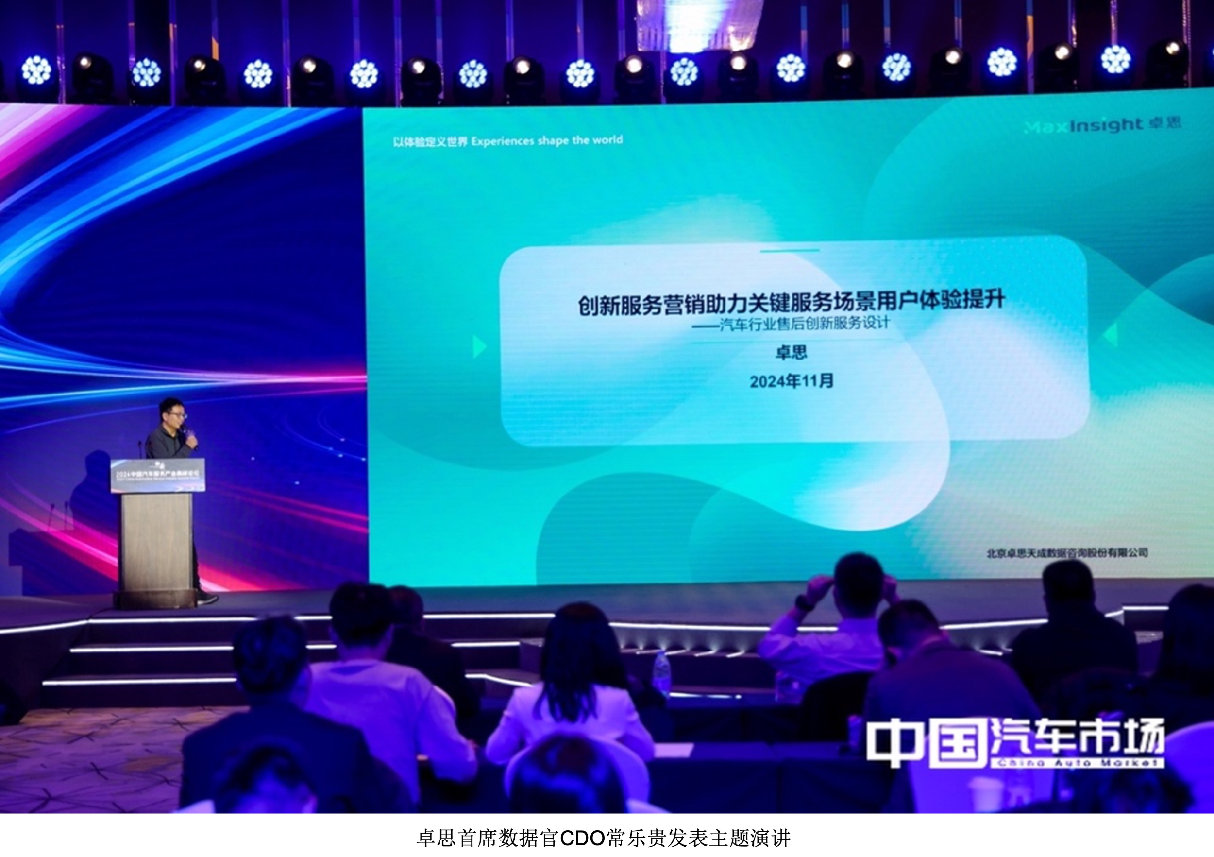 近日,由《中国汽车市场》杂志社与搜狐汽车联合主办,汽车与驾驶维修传媒承办的“2024中国汽车服务产业高峰论坛暨第十九届金扳手评选颁奖典礼”在北京举行,北京卓思天成数据咨询股份有限公司(以下简称“卓思”)首席数据官CDO常乐贵受邀出席论坛并发表《创新服务营销助力关键服务场景用户体验提升》主题演讲。